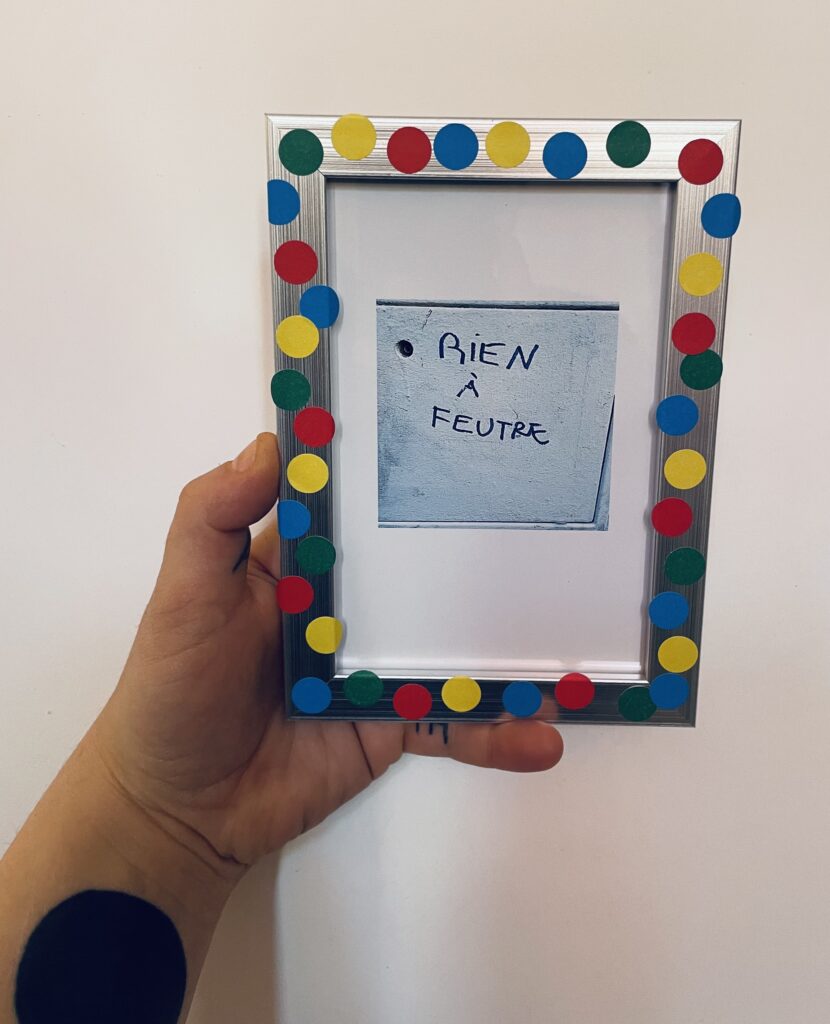 RIEN à feutregraffiti, Marseille 2024 – cadre en aluminium et gommettes